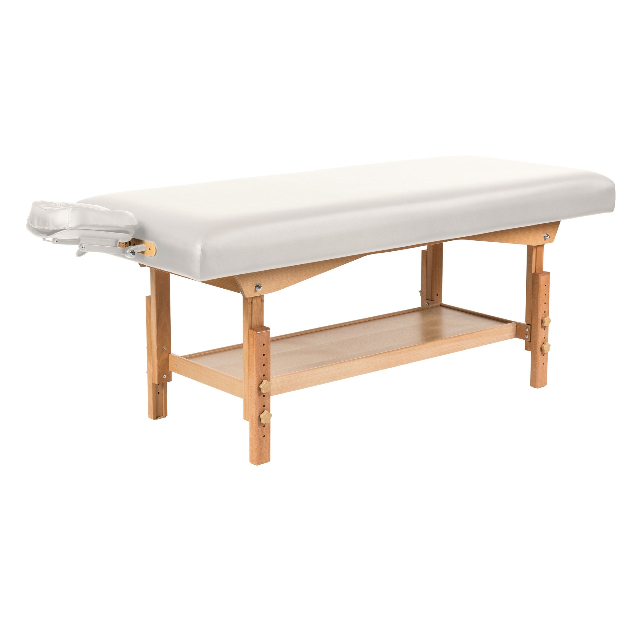 The Sierra Comfort Classic Stationary Massage Table (SC-2000) is a simple yet sophisticated design built for stationary use. The beech hardwood frame and 3” of high-density foam offer sturdy support and comfort.