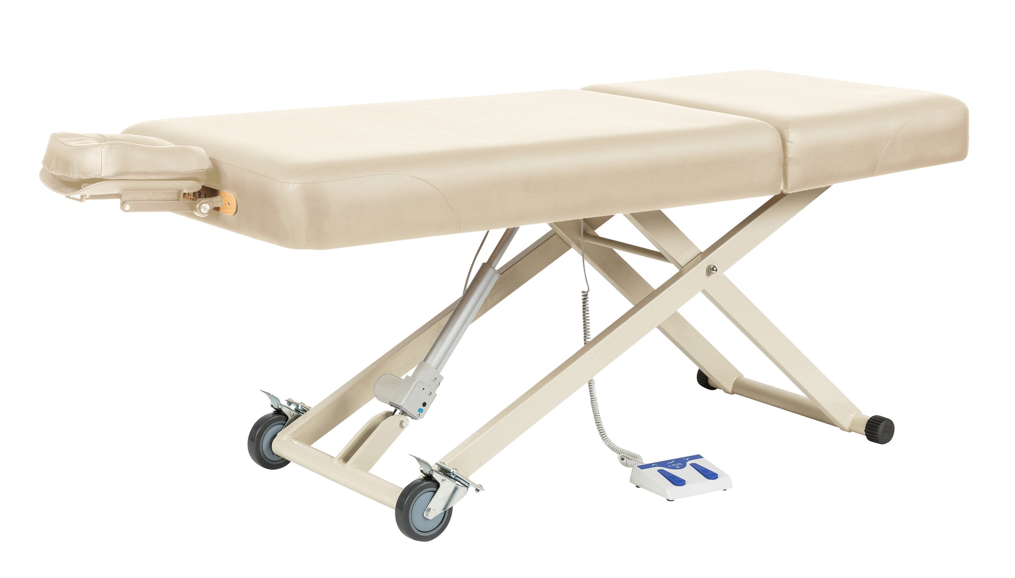 The table height is controlled electrically with a foot pedal assist, ranging from 16” to 31”. The backrest is adjusted manually, assisted by a pneumatic gas lift. Face cradle outlets at both ends of the tabletop offer versatility. Included are an adjustable face cradle and face pillow. The SC-3001 is a practical design, offering convenience and reliability.